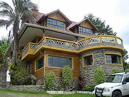 外観はおしゃれなログハウス(基本的には石造りだけど)。中には、居間からでかいテラス(眺望最高)、そしてプレイルーム!このプレイルームには、卓球台とビリヤード台がある。