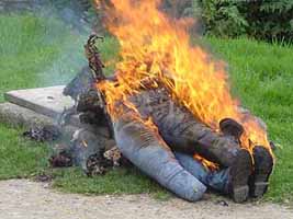 燃えてる時に人形を飛び越えると福が来る、って迷信もあって、みんな燃える人形を飛び越えてた。もちろん俺は飛び越えてないけどね(笑)。