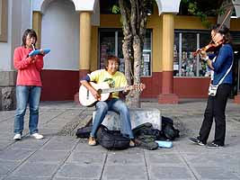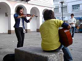 その後、池田君とりえちゃんとマチコとホーリーがやってるバンド、「こころ」がクエンカの旧市街のど真ん中のストリートで演奏した。エクアドル人は、ストリートパフォーマンス大好き。何か誰かがやってると、すぐに黒山の人だかりになる。この日はそれほど多くの人は集まらなかったけど、もうこのバンド