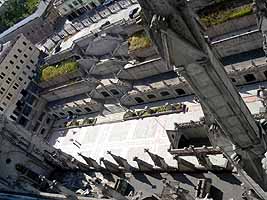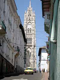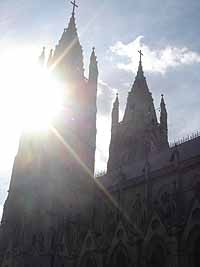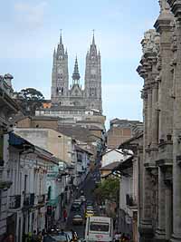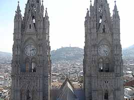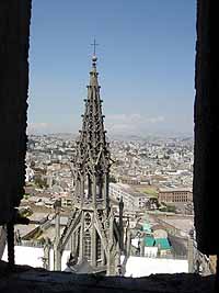 今日もセントロに行った。一番良かったのが、キトで一番高い塔を持つ教会、Bacilica de Voto Nacional。ここは、高い尖塔のてっぺんまで登れるんだけど(写真参照)、ここから見たキトの街並みは最高だったね。こないだ登ったパネシージョの丘もよく見えた。聖母像と同じ高さでさ。ここは俺がキトで一番気に入った場所になった。