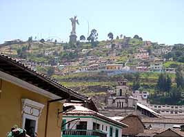 今日もキト旧市街、セントロに行った。一番良かったのが、セントロから見るパネシージョの丘。丘に上がったら上がったでいいんだけど、下から見る聖母像も、また格別の趣きさ。写真を撮りまくったよ。その他、サンフランシスコ教会やサントドミンゴ教会を回った。