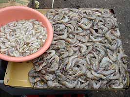 いものが多い。特に海産物。えびが大きなボールいっぱいに入っている。