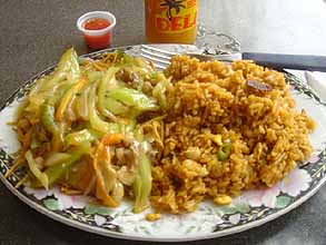 昼飯はマレコン2000のはずれにあるファーストフードが集まる屋外フードコートで。中華のファーストフードで、焼きそばとチャーハンを半分ずつ皿に盛ったその名も「チャウラリン(Chaularin)」を頼んだ(「チャーハン=Chaulafan」と「焼きそば=Tallarin」との造語)。2.8ドル。この手のファーストフードにしては高い。いや、エクアドルではファーストフードだから高いのだ。マックなんて日本並みの値段(マックは、キトとグアヤキルにある)。普通の大衆食堂の定食ならたったの1ドル〜1.5ドルで食えるのに。
