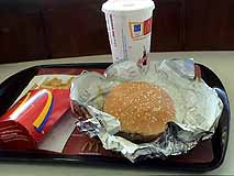 マレコン2000の桟橋で船を待つ間、時間があったのでマックに入った。エクアドルに来て4ヶ月、初マックだ。トマトやレタスをはさんだハンバーガー、いわゆるBLTサンドのセットを頼む。値段は何と4ドル!べらボーだ。高過ぎる。味は、ちょっと塩辛かったけど、さすが世界中どこにでもあるマック、ほとんど日本で食べるのと変わらなかった。味は基本的によく統一化されている(中にはその土地土地の特色を生かしたスペシャルバーガーがある国もあるが)。サイズは、まずコーラがデカイ。普通サイズが、日本で言えばLサイズ。ポテトも日本で言うM〜Lサイズ。ハンバーガーも日本のより一回り大きく、ボリューム的には満足できた。最近の日本のマックは、激安になってる分だけどんどん小さくなっていってるからね。