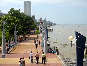 さて、同じバスで再びセントロ方面へ戻り、今度はちゃんとセントロ近くのキト通りで降りる。8月10日通りを歩いてセミナリオ公園を通り過ぎ、グアヤス川へ。グアヤキル随一の観光スポット、マレコン通りのマレコン2000は、噂にたがわぬ綺麗な遊歩道とレストラン・ショップ街を有していた。横浜とかシカゴのNavy Pierなんかを彷彿とさせる、川沿いのおしゃれ道だ。
