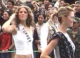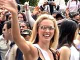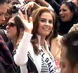 そしてついに来ました、各国代表のミスたちが。もうこのときには群集の興奮は最高潮に達し、後ろからものすごい勢いで押され、もみくちゃ状態。東京かインドの満員電車の趣だ。もみくちゃ状態でビデオカメラを懸命に回す俺。