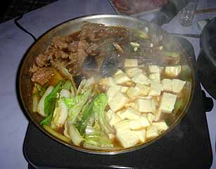今日は土曜日。先輩隊員の室崎さんが日本酒を手に入れた、とのことで、室崎さんちで「日本酒&スキヤキパーティ」開催!クエンカにいるJICA専門家の日本人から以前「豆腐」をゲットしていたので、本格的なスキヤキだ(右写真参照)!もちろん新鮮な生卵で!
