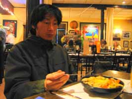 俺達は、味噌汁とタイのグリーンカレーとベトナムの春巻き(ただし生春巻きではなく、揚げてあるやつ。中国の春巻きではない。)、そしてオリエンタルサラダを頼んだ。グリーンカレーは本物のグリーンカレーからは程遠いものだったが、味噌汁は美味かった。豆腐とワカメの正統派味噌汁。日本で食ってたのと全く変わらない味。