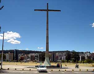 青空にそびえるカロリーナ公園の十字架(キト)