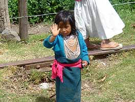 線路の周りでは、屋根に乗客を乗せて走る列車にエクアドル人の子供達が盛んに手を振ってきます。かわいいものです。僕らも手を振り返して応えます。どこを見ても家のない、山奥の大自然の只中にも、どこからやって来たのか、子供達やインディヘナの親子が線路脇で待ち構えています。そして、1週間に3度運行するこの列車を待ちかねたように手を振ってくるのです。