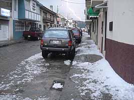 大雨はしばらくして止んだ。雨雲はものすごい勢いで移動しているらしい。稲妻が相変わらず光る中、俺は学校が終わった後セントロに買い物に行った。驚いたことに、セントロは雪が降った後の様相を呈していた。雪景色。