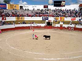 ご承知の通り、スペインが発祥の闘牛は、かつてスペインが植民地にした中南米各国にも一つの文化として伝来した。エクアドルでは常催の闘牛があるのか知らないが、このようなフェスタの時は一つの目玉イベントとして闘牛が行われるようである。私が見に行ったこの日は、主役のマタドール(正闘牛士)は、本場スペインやメキシコから招き、エクアドル人のマタドールも出場した。