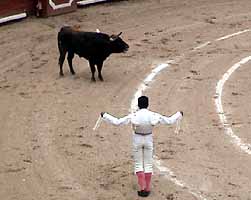 「甘い感傷論」と笑われそうだが、このシーンを計5回見て、つまり5頭の牛が人間に痛めつけられながら嬲り殺されるのを見て、決していい気持ちはしなかった。確かに人間は弱いものを殺し、食糧にして生きている。が目の前で殺傷劇を見るのは、正直楽しくはなかった。落合がホームランを打った時のような、ケビン・ガーネットが豪快ダンクを決める時のような、ブラッド・ジョンソンが50ヤードのタッチダウンパスを通した時のような、また中国雑技団やポール・マッカートニーのライブを見た時のような、爽快感もないし驚愕もない、興奮もなければ美しさを感じることもなかった。これを一つのエンターテイメントとして見るのは難しい。これには、きっと伝統と歴史に育まれた、何か高尚な、深遠な意味性があるに違いない。スペイン人の闘牛ファンにとってはこれはもう文化の一部であり、ここにスペイン人としてのよりどころの何かを持っているのかもしれない。大相撲の諸作法の動作が、日本古来の伝統的な何かを表しているように。実際、例えば牛に止めを刺す瞬間を「真理の時」と呼ぶそうである。この闘牛という競技の中に、彼らは何か普遍的な世界を見出しているのだろうか。確かに、一歩間違えば何百キロもある牛に突かれて病院送りなんてこともあるだろうから、牛と人間の命を懸けた真剣勝負、ということは言えるだろう。その命懸けの果てに初めて見えてくるものがある、というのか。