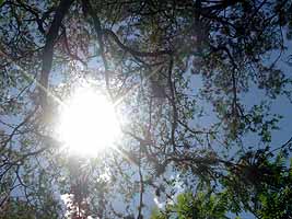 朝、宿でデジカメのバッテリーを充電してる間、空を見ながらハンモックでボーっとしてる。やがて充電も終わり、チェックアウトして外に出る。