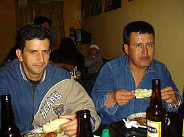 ビールの本数が順調に増え、空腹が満たされるにつれ、話が加速していく。電気電子技術のこと、各自のプライベートなこと、エクアドルの政治経済のこと、日本のこと、女のこと、話題は様々に及ぶ。俺以外の4人のメンバーは、2人が軍人、一人は電気修理屋を営んでいる技術者、もう一人はインドゥラマというエクアドル唯一と言ってもいいマトモな電気メーカに勤めている技術者である(ちなみにインドゥラマの主力商品は冷蔵庫とガスレンジである)。このインドゥラマの彼は近々テレビやパソコンを扱う電気修理屋を開業しようと目論んでいるらしく、その下準備として俺の授業を受けに来た、と言う。