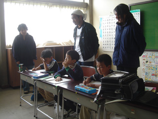 朝の授業が始まると授業を見学。子供たちの父兄が先生役を務める。キトのSECAPに勤める専門家の立壁さんも算数を教える。ちなみに、立壁さんの叔父さんは、あのドラえもんのジャイアンの声を務める声優のたてかべてつや氏である。