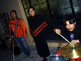 4月上旬に到着した新隊員5名がスペイン語を学んでいる語学学校ネクスス(NEXUS)。今日は彼らの語学学校最終日。夜、修了式の後の壮行送別会で、俺たちラ・ぼんちが演奏した。学校の小さな中庭で、夜8時半くらいから4曲。ここのところ毎晩雨が降っていたので中庭で出来るかどうか心配だったが、杞憂だった。観客は新隊員5名と、学校のスタッフ、先生やホストファミリーのエクアドル人15人くらい。演った曲は少年ナイフ1曲にブルーハーツ3曲。ブルーハーツの3曲に関しては、エクアドル人達には日本語で何を歌っているのかさっぱり分からなかったろうが、それでいい。感じろ!