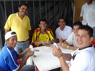 朝、グアヤキルからバスでコスタを北上し、ケベドのテルミナルに着く。午前11時半。テルミナルの向かいの食堂では、テーブルを囲んでトランプをしてた、ここエクアドルでよく見かける、朝から遊びやがって普段仕事してんのかお前ら的オヤジ軍団から早速声をかけられる。まぁ、今日は休日だからだろう。