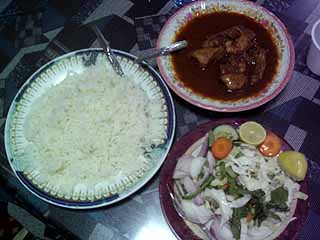夕食はルイにあるオマーン料理屋で魚ライスを食った。『歩き方』に乗っているので気の利いたオマーン料理が食えるかと思ったが、そこは改装中なのか、看板もなく、ただ営業はしていたが客は僕以外誰もいないようであった。僕はオマーン料理屋特有の、テーブルのない、テレビやクッションのあるイスラム風個室に通され、絨毯に座り込んで食らった。腹があまり減っていなかったこともあり、魚ライスは、美味くもまずくもなく、普通。