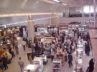 夜7時半。路線バスにはギュー詰めに人が乗っている。アザーンが流れる。さらに行くと、明るいネオンに包まれた、さらに近代的な商店街が現れる。この辺りでは一転して金持ちそうな民族衣装に身を包んだアラブ人が多く歩いている。貴金属系、欧米ファッション系、民族衣装等の服屋、マック等の欧米系レストランが見られる。