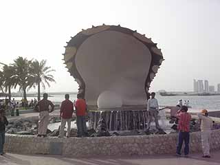 20分ほど海の方へ向かって歩く。途中スークがあるが、いずれも建物の中にある近代的なショッピングセンターと呼んだ方が正しいもので、興はない。しばらく歩くと、海に着く。ドーハもまたアラビア海(ペルシャ湾)に面した街である。真珠貝のモニュメントがあり、観光客なのか出稼ぎ者なのか、人々が盛んに写真に一緒に収まっている。海の向こうの対岸に、高層ビル群が揺らめいて見える。