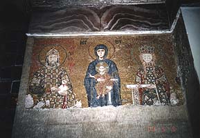 | アヤソフィア内のモザイク画。 イエスを抱いたマリアの姿が描かれている。 |
