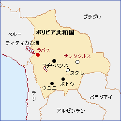 ボリビアは、南米大陸西部に位置する、海に出入り口を持たない内陸国である。国土面積は日本の約3倍ながら、人口は830万人あまり(2002年)と、日本の10分の1以下。純粋な先住民・インディヘナが人口の55%を占め、南米諸国の中で最も先住民の人口が多い国である。白人とインディヘナとの混血・メスチソは32%。宗教は、ほとんどがキリスト教徒。