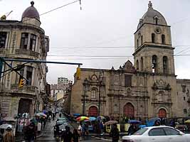 しばらくすると、雨が降ってきた。しかも大雨が。乾季のラパスにこんな大雨が降るとは予想外。しかも時とともに雨脚は強くなってくる。食べ終わった後しばらく様子を見ていたが一向に雨が止む気配はない。結局この後降りしきる雨の中を飛び出し、宿に戻るという内川さんと別れ、セントロ(旧市街)を見て回った。やむなく傘を買う。南半球のボリビアは、今が一番寒い時期だ。予想はしていたがこの雨が寒さを倍化させている。