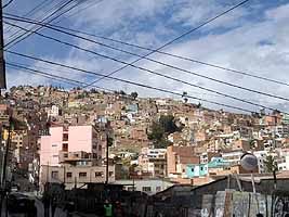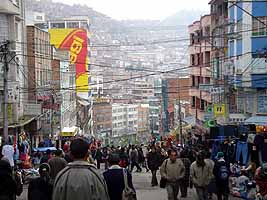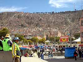 ムリリョ通りとサンタクルス通りの狭い交差点で、セメンテリオに行くミニバスを拾う。ミニバスは走っていた。だが、セメンテリオに着いて、人にティワナク行きのバスの発着場所を尋ねると、またまた予想もしなかった答えが。