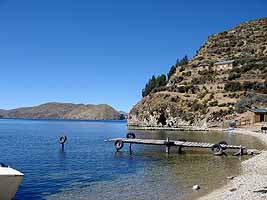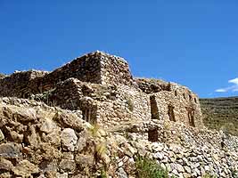 コパカバーナの街に戻る帰途では、インカ時代の遺跡に立ち寄る。ただ小さな石造りの建物だけが残っているのだが、それは何千年も昔から青くたたずむこの湖になぜか似合っている光景だと感じる。