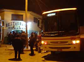 6時間ほど走って、夜中の12時過ぎに小さな村に停車し、ようやく休憩時間。1件のレストランで乗客が思い思いに食事したり温かい飲み物を飲んだりしている。ポトシからラパスへ戻るバスも僕らのバスのちょっと前にここに着いたらしく、止まっている。