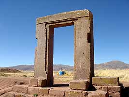 ティワナク遺跡は、遠くに山々を見渡せるだだっ広い平原にぽつんと残されていた。インカより古い今から約1600年前〜1200年前(400〜800年頃)、この地に繁栄したティワナク文化は、かなりの規模を誇った文化だったという。今ではその痕跡を全く残していない、ピラミッドだったという小高い土の山。いくつかの遺構。モノトリートと呼ばれる人型の石像。