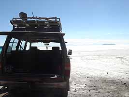 翌朝。「クリスタル・ツアー」という旅行会社のウユニ塩湖1日ツアーに参加した。午前11時、運転手のおじさんと7人のツアー参加者を乗せたトヨタの4駆・ランドクルーザー(以後ランクル)は快晴のウユニの街を出発。