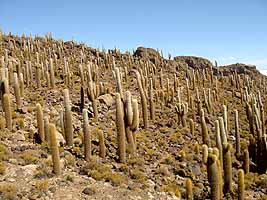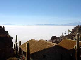 島の名は、「魚の島」(イスラ・デ・ペスカ)。島の形が魚のように見えることから名づけられたという。ここもティティカカ湖の太陽の島と同じように小高い丘となっていて、登れるようになっている。丘にはたくさんのサボテンが生えている。このサボテンは、昔インカの人々が植えたと言われている。丘の頂から見る塩湖の雄大な風景は、不思議な感覚をもたらす。どこか北の雪国に来たような光景だ。グリーンランドってこんな風景なのかもしれないな、ふと思いが浮かぶ。