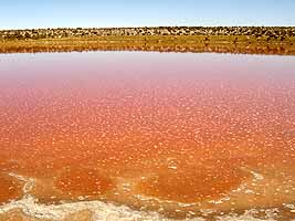 車は、潅木の生えた草原、道なき道を45分くらい走って、ラグーナ・ロハという赤い小さな池に到着した。近くではリャマの群れが草を食んでいる。そして車は運転手のおじさんの母親が住んでいる小さな集落を経て、塩湖のふもとにある小さな村に立ち寄る。ここでは、人々が塩で作ったお土産を売っている。塩製の容器、置物、サイコロなど。僕は塩の小さな灰皿を買った。