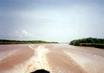 ボートの屋根の上では、白人の若者達が水着状態になってカンボジアの強烈な日差しを気持ち良さそうに浴びている。私も途中狭い船の中に飽きたので、屋根の上に登って凄まじいスピードで前から後ろに流れていくトンレサップ湖の茶色い水と遠くに見える岸を眺めた。今日も35℃くらいありそうだ。熱帯の太陽が頭の上から照り付けてくる。だが、ボートはかなりのスピードなので、風に当たっているとすぐに涼しく感じられる。白人たちは感覚が鈍いのか、裸で屋根の上に何時間もいても平気にしている。私は1時間くらい上にいたけど、もう風に当たるのはセイセイしたので、船の中に戻った。
