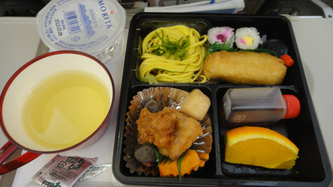 アシアナ航空 関空⇒インチョン便の機内食。そばにいなり、のり巻き