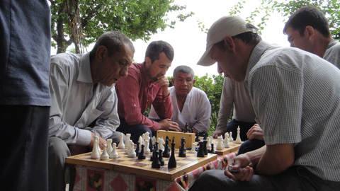 チェスに興じる男たち。真剣そのもの