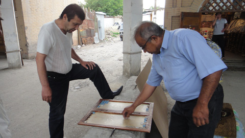 僕が日本人であることが分かると、彼は”くるみ”という日本語を連発し、僕に説明した。彼の作る工芸品は、目を見張る出来栄えだ。ウズベキスタンの有名なお土産、「くし型本置き」には圧倒された。これは本を置くための木工品なのだが、くし型になっていて、これを動かすことで様々な形になり、いくつものサイズの違った本を置けるようになるという芸術品と言ってもいい工芸品である。
