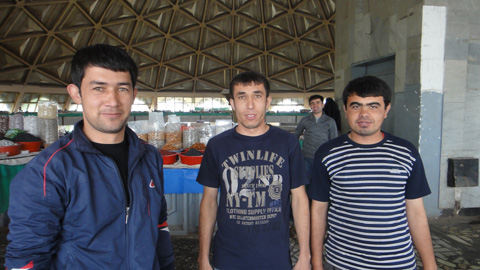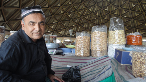 バザールでは売り場のニーちゃんたちが次々にレーズンとかピスタチオを勧めてくれる。美味い。カメラを向けると、喜んでポーズをとる。うん、いい国だ。彼らはロシア人(白人)ではなく、ほとんどがトルコ系のウズベク人に見える。色黒で顔が濃い。中にはロシア的でさっぱりとした顔も混じる。さらにアジア系の顔。