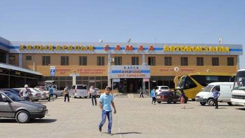 朝食後またしばらく横になり、10:30頃外に出る。まず、サマルバスターミナルへ行き、キルギスの首都ビシュケク行きの国際バスの時間を調べねばならない。この時間によって今後のスケジュールが決まる。