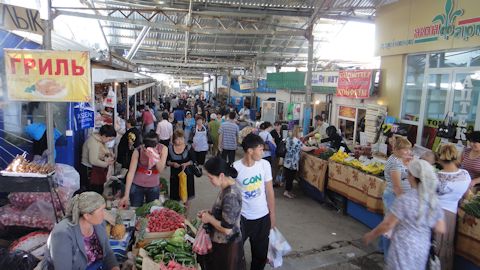 中央バザールで売り子のオバちゃんたちに「写真撮っていいか?」と聞くと、「No」の返事がしばしば。タシケントのチョルスーバザールとはノリが違う。厳格なイスラムでもないだろうに。