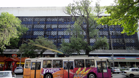 ジベック・ジョル大通りを東へ。ツム百貨店前に、10時の開店を待つ人々が集まっている。この辺りは歩行者天国となっているが朝まだ人通りは少ないようだ。今日は平日、普通ならみんな働いている時間だから当然か。