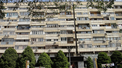 今回の旅で驚いたのは、旧ソ連式建物の独創性だろう。建物自体、窓枠、テラスの形や装飾がまるっきり西洋建築とは異なっている。ちなみに、民家はトタン屋根の三角屋根。
