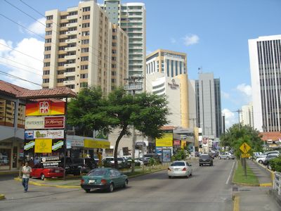 高速をしばらく走るとパナマシティの高層ビル群の只中にベンツは突入。凄まじいビル街だ。もちろんニューヨークやシカゴや東京ほどではないが、ラテンアメリカとしてはすごい数の高層ビルが建っている。キトの新市街など比べ物にならない。