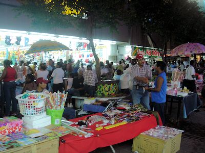 旧市街の一画で露店を開いている人たちがいる。少数民族であるクナ族の、鳥などを描いた独特の刺繍が入った飾り布、「モラ」を売っている。クナ族は、カリブ海に浮かぶサンブラス諸島に住んでいる民族で、クナ族の女性が創るこの「モラ」は、民族衣装であるブラウスの胸と背中に縫い付ける飾り布だそうである。