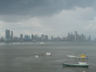パナマ旧市街から望む新市街 (雨模様⇔晴れ)