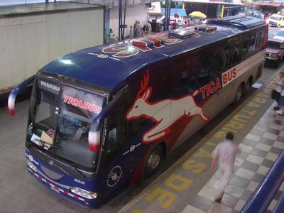 午前10時過ぎ、コスタリカの首都サンホセに向けてバス発車。TICAの国際バス。料金は25ドル。国際バスらしく、豪華なバスだ。