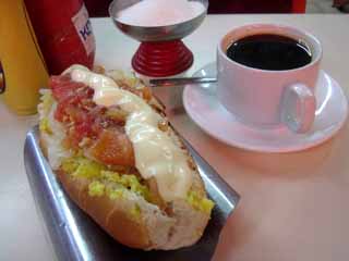 朝飯。ホットドッグとコーヒー