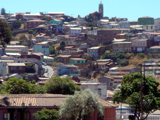 バルパライソ。サンティアゴから120km、バスで2時間、1536年に開港した、太平洋に面するチリの古港、またサンティアゴに次ぐ大都会である。植民地時代、スペイン人たちがアンデスで盗んだ金銀をスペイン本国に送り出すための重要な拠点として栄え、以来チリ最大の港町である。現在は軍港でもあり、チリ海軍の軍艦が何隻も停泊している。バルパライソ(Valparaiso)とは、天国(Paraiso = Paradice)の谷(Val = Valley)という意味である。
